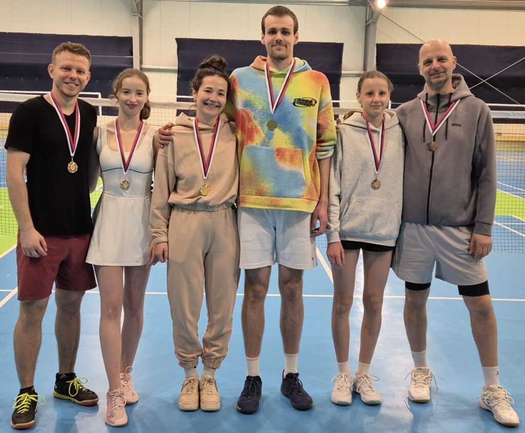 Na obrázku je klubový tím, ktorý odohral zápasy posledného kola: (zľava) Simona KURUCOVÁ, Arsenii TIKHOMIROV, Terézia ČAPLIAROVÁ, Michaela BRIDÍKOVÁ, Marián BILIC, Juraj LIČÁK, Gokul RAJ.